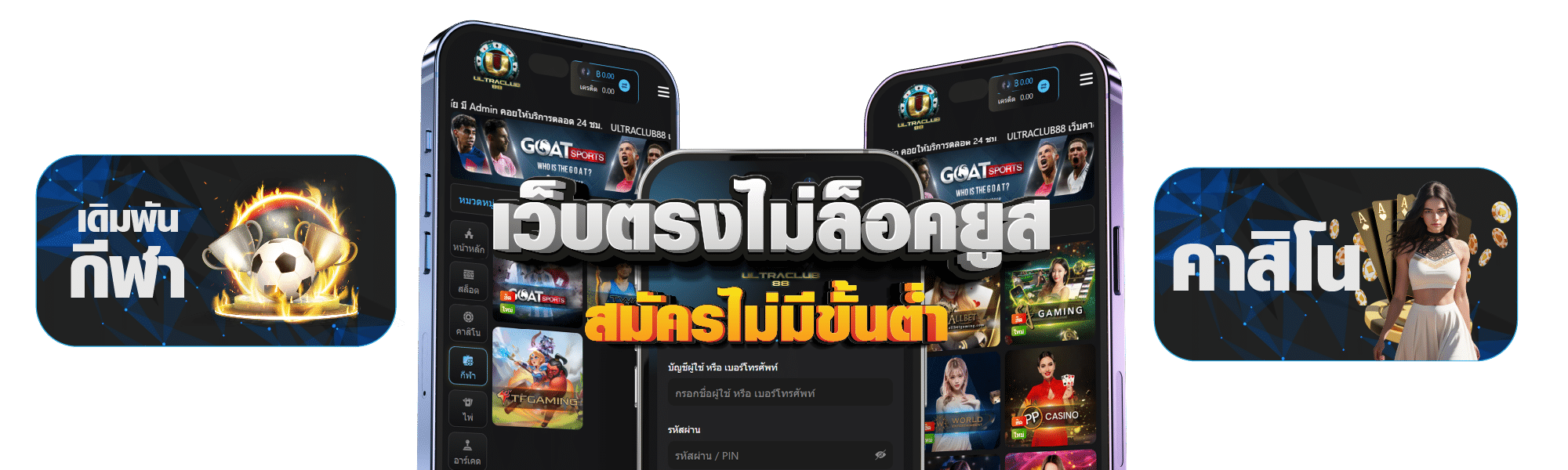 เว็บพนันของแท้ไม่ล็อคยูส เว็บตรง Ultraclub88 แหล่งรวมเกมคาสิโนออนไลน์รวมค่ายมากกว่า 500 เกมในเว็บเดียวให้ผู้เล่นเลือกเดิมพันเกมใดก็ได้ในเว็บ คาสิโนเว็บตรง แทงหวย แทงบอล เดิมพันเกมกระดานต่างๆ อีกมากมาย ในเว็บพนันออนไลน์ที่เชื่อถือได้มากที่สุด ในตอนนี้ เกมคาสิโนออนไลน์เว็บแท้ ส่งตรงให้ผู้เล่นได้รับความพึงพอใจจากค่ายที่ใหญ่ที่สุด